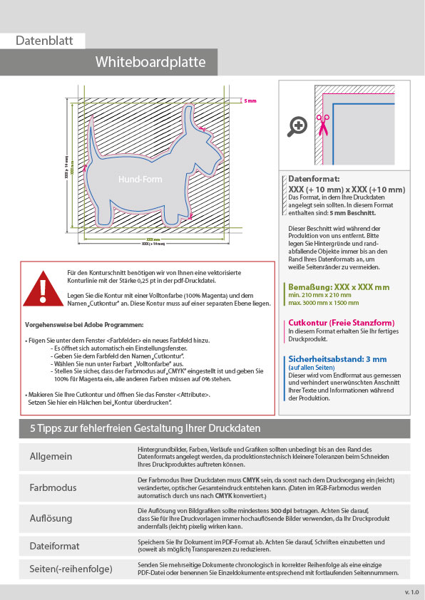 Whiteboardplatte in Hund-Form konturgefräst unbedruckt